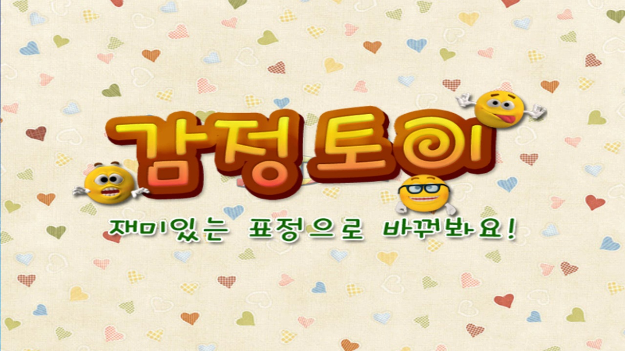 여러가지 표정의 감정 토이들이 여기 저기 움직입니다.